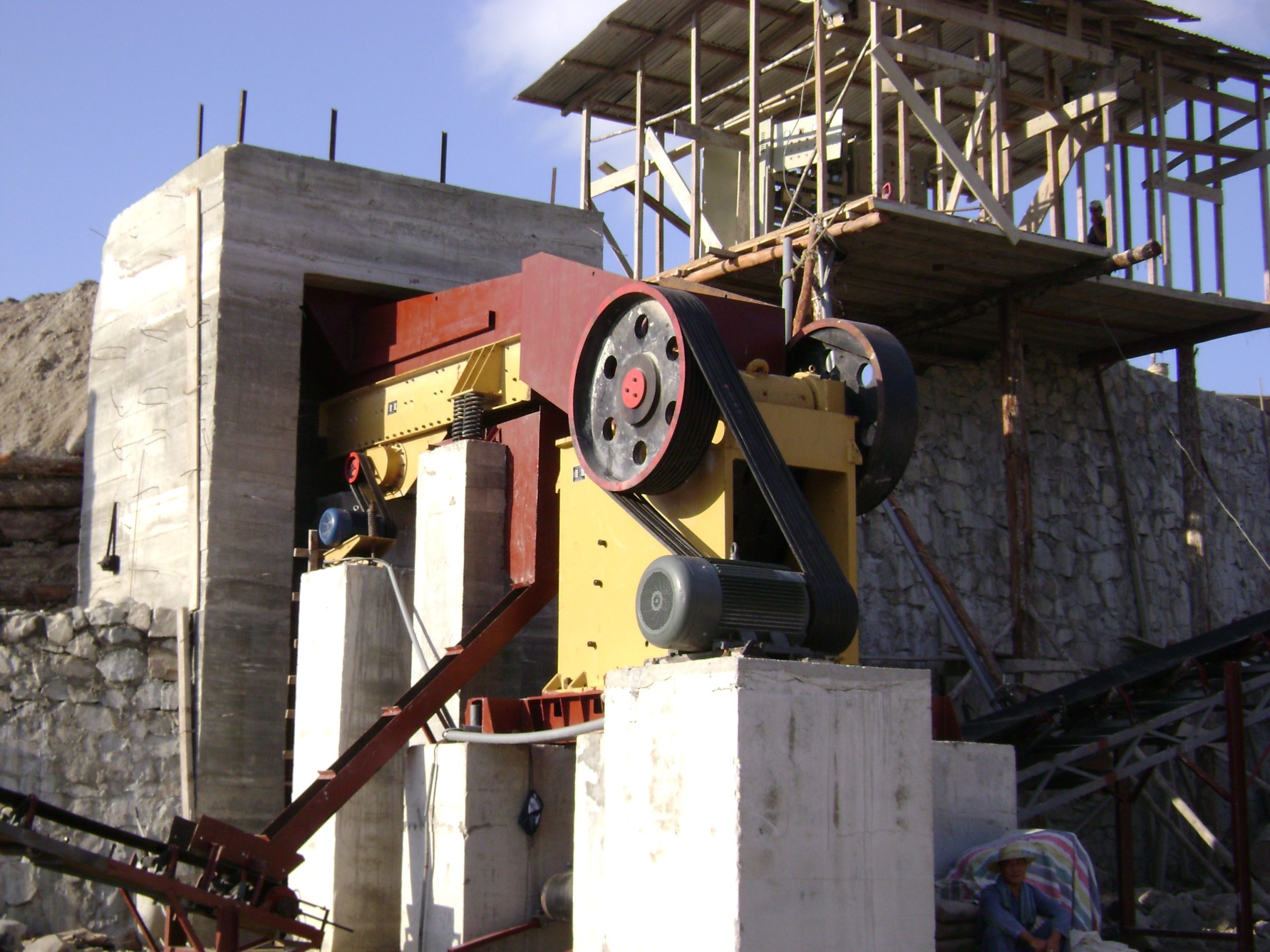 Cấu hình thiết bị: máy cấp liệu rung + máy nghiền hàm + máy nghiền hình nón/máy nghiền va đập + máy tạo cát (nếu cần tạo cát) + sàng rung + máy rửa cát (nếu cần vệ sinh) + băng tải.
